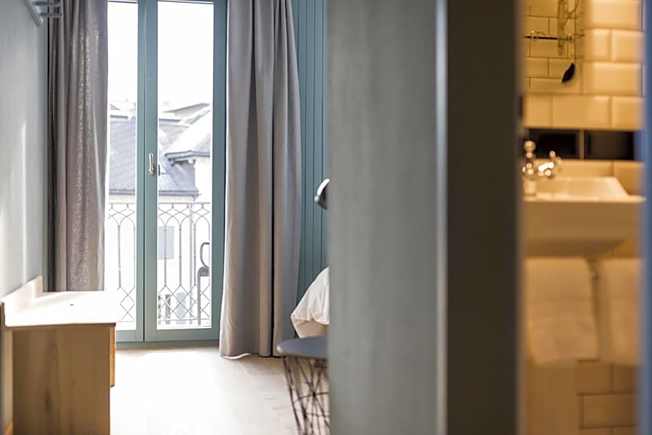 This junior suite is located in the attic and fitted with larch and fir wood furnishings. It overlooks the market square and comes with an elegant bathroom with a free-standing bathtub, Molton Brown® toiletries and a flat-screen TV. Complimentary mineral water from Valais is provided, as well.