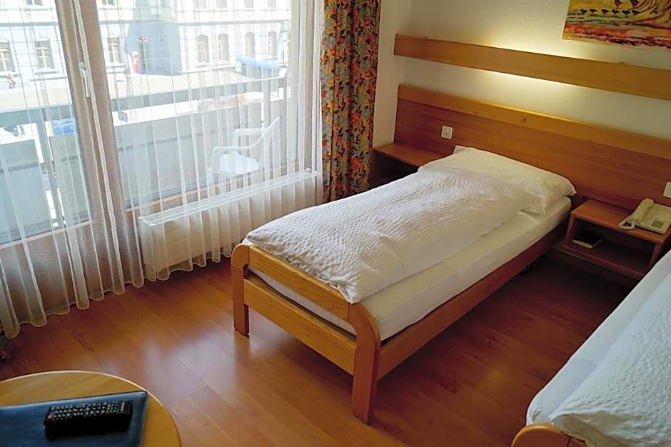 We were, on balance, grateful that we had a room overlooking the station, as my partner is a railway enthusiast and was delighted with the view. But it was a bit bright at night, however, with some traffic noise from the road. We discovered that Swiss electric sockets are of a unique design, however there is an electrical shop a couple of minutes walk away that sells EU to Swiss adapters.