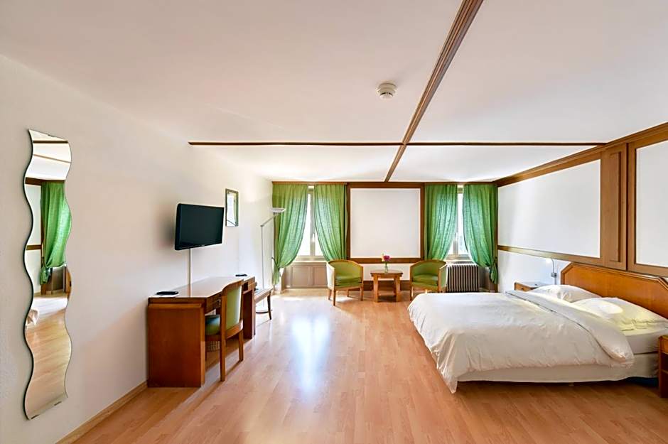 Located in the heart of the Val de Travers, in the lovely village Couvet. The hotel has a nice garden and the restaurant is in beautiful traditional wood style. The entire Interieur of the hotel is very charming.