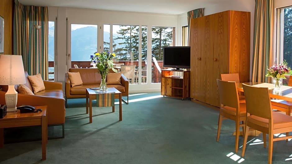 Bedroom, living room, 2 bathrooms, 2 TVs, south-facing balcony with views of the Alps. Please note that extra beds are not available in this room type.