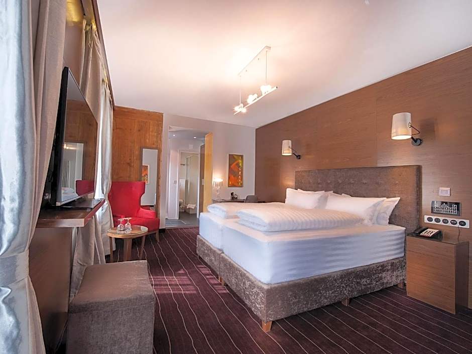 Beautiful hotel, housed in an old building but beautifully renovated. I was particularly impressed by the design and furnishings. The location is very central, very friendly staff, you can buy ski tickets directly at reception, if you forgo the daily cleaning you get free drinks. The light can be conveniently controlled via a touch panel. Very clean.