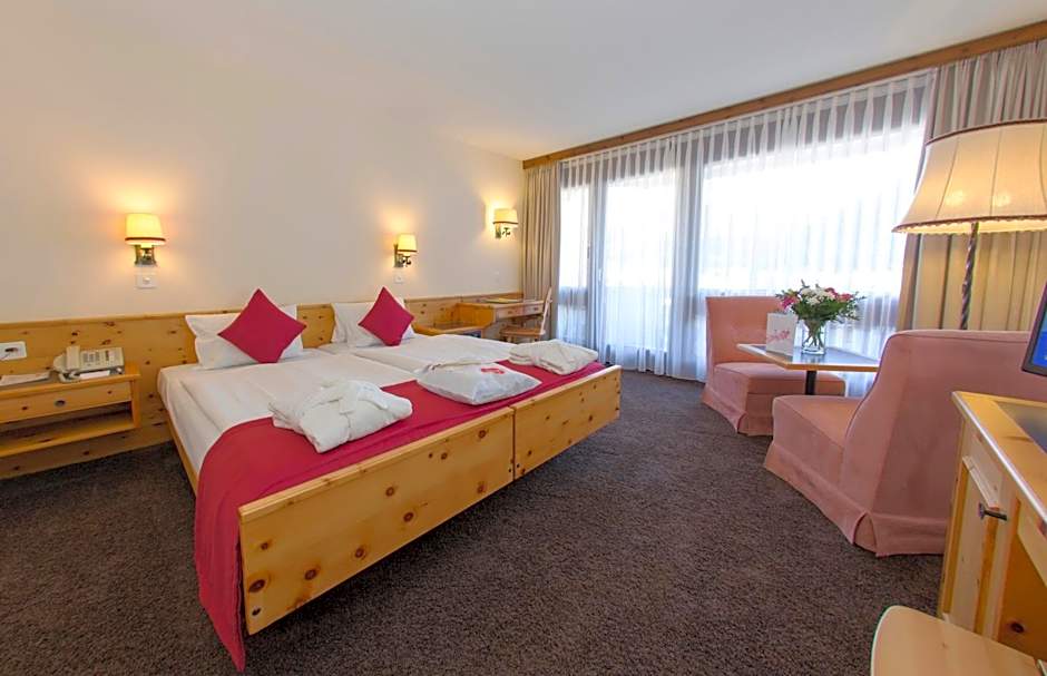 Lovely spacious rooms with large balcony. Nice to open the windows and step out. Used the pool. Only ones in it so plenty of room. Easy check in and friendly staff. Nice ambience- traditional Swiss hotel with wooden decor. Great hotel to visit in the summer. Lovely views of trees & mountains. 24- hour desk. We were back very late after a concert & it was no problem getting in. Perfect for the purpose & good value compared to comparable other hotels. Would recommend.