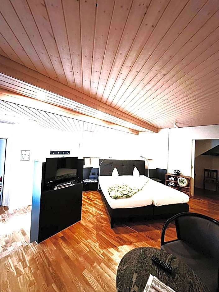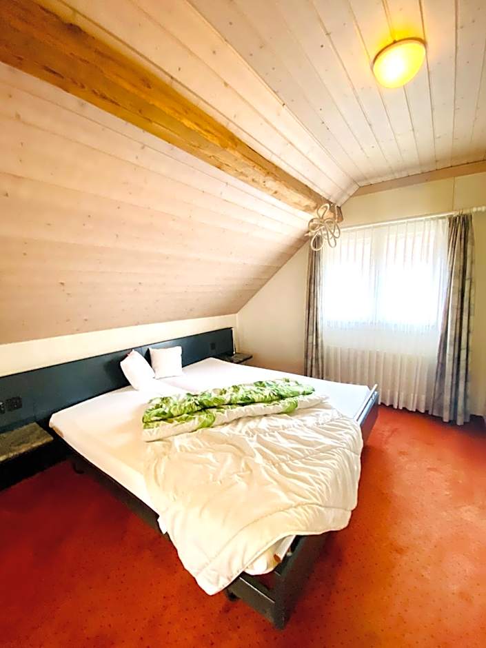Owner was extremely helpful and met us on arrival. Location excellent for one night transit through Switzerland. 2 minutes off the motorway and quiet room. Room was large, bathroom huge, with bath and separate shower, bed and linen needs an upgrade but clean and overall excellent value for the price. We didn’t have breakfast, as we had a very early start, but it was included and there was continental items we could have helped ourselves to. Very thoughtful.