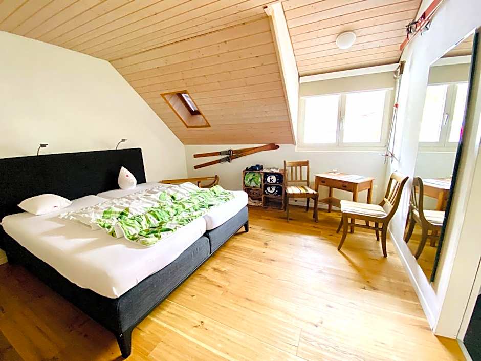 Lovely hotel, super clean, friendly helpful staff, interesting themes to each room In a lovely old traditional building. Nice Swiss breakfast, lovely yoghurt and granola and choice of other things. Restaurant very nice as well, we had a lovely meal in the garden area.