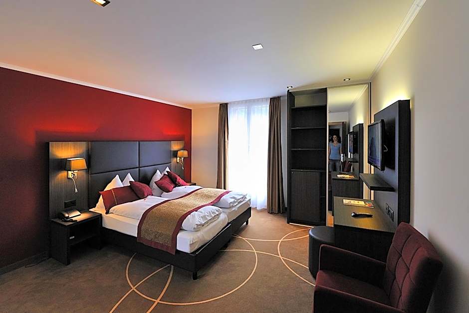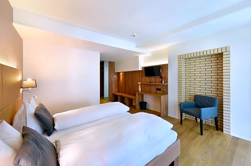 Fresh and bright colors and dark furniture, this spacious room has an unique charm. It consists of a double or twin bed, work desk, cupboard, flat-screen TV, fridge and safe. The bathrooms are modern and bright. The rooms offer a beautiful view on Engelberg Mountains.