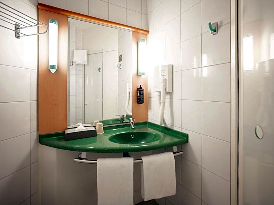 The location is perfect : there is a bus stop close from the hotel, this bus line go to the train station, only 15mn away...also it is a safe and quiet location. The staff at these Ibis & Ibis budget are always very friendly and helpful. Our room was very tidy and clean, so as the bathroom. The bed was extremely clean & comfortable and we slept sooooo good ! In the bathroom there was always plenty of body/Hand-wash and shampoo, and fresh/soft towels. We watched the telly too, there are many programmes to watch in different languages. There is air condition in the room if needed.