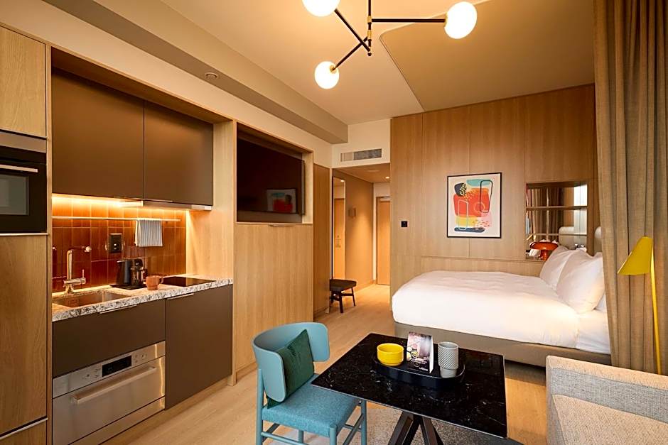 At Adina Apartment Hotel Geneva, guests can choose from two-bedroom apartments, one-bedroom apartments, and studios. All rooms are non-smoking and the sizes range from 291 sqft for the studios to 495 sqft for the two-bedroom apartments. The two-bedroom apartments can accommodate up to 5 adults, while the one-bedroom apartments and studios can accommodate 2 adults. The rooms are equipped with queen size beds, with the addition of a double bed and a sofa bed in the two-bedroom apartments.