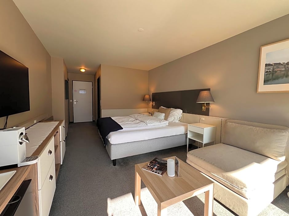 Guests at Seehotel Riviera can spend their time enjoying a range of leisure amenities. They can relax and unwind in the sauna or explore their competitive side with a game of mini golf. The hotel also features a bar where guests can gather and socialize, as well as a sun deck for soaking up the beautiful surroundings.