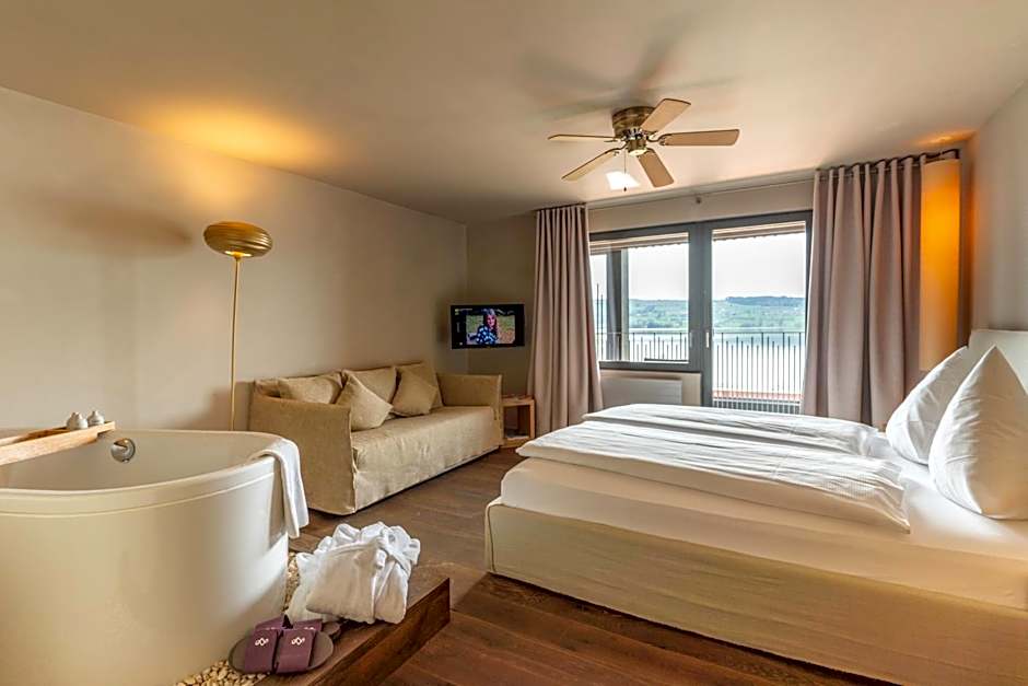 The Sonne Seehotel offers a variety of rooms, including Premium Rooms with a lake view, Wellness Suites with a lake view, Comfort Double Rooms with a village view, Junior Suites with a lake view, Superior Double Rooms with a lake view, and Superior Double Rooms with a village view. Smoking is not allowed in any of these rooms. The rooms accommodate either 2 adults or 3 adults, and have bed sizes ranging from double beds to queen and king size beds.