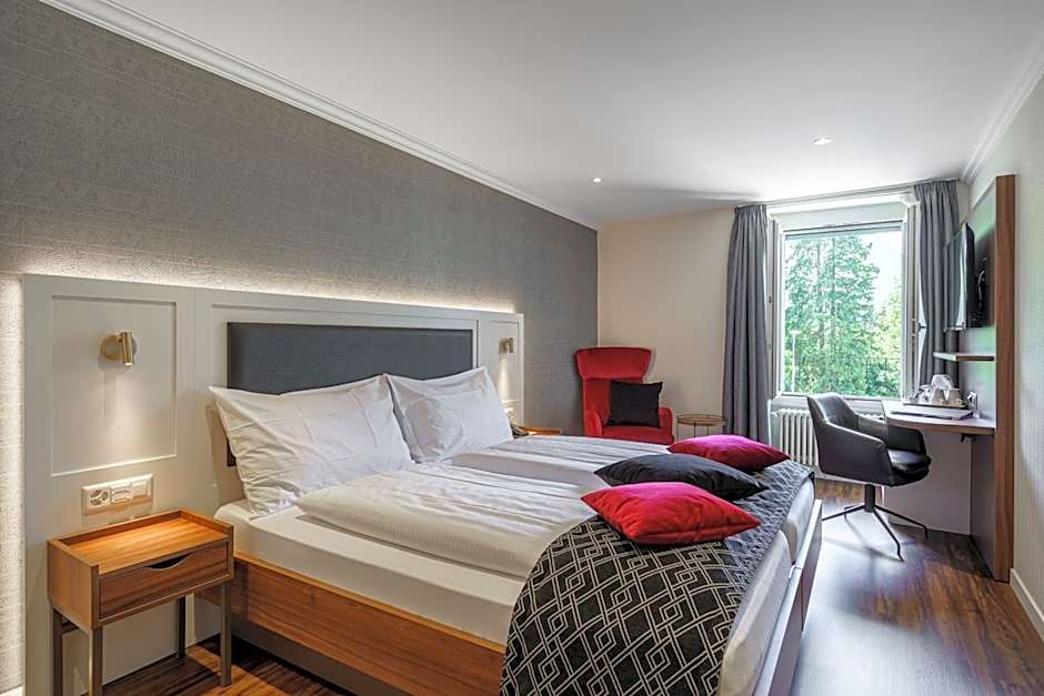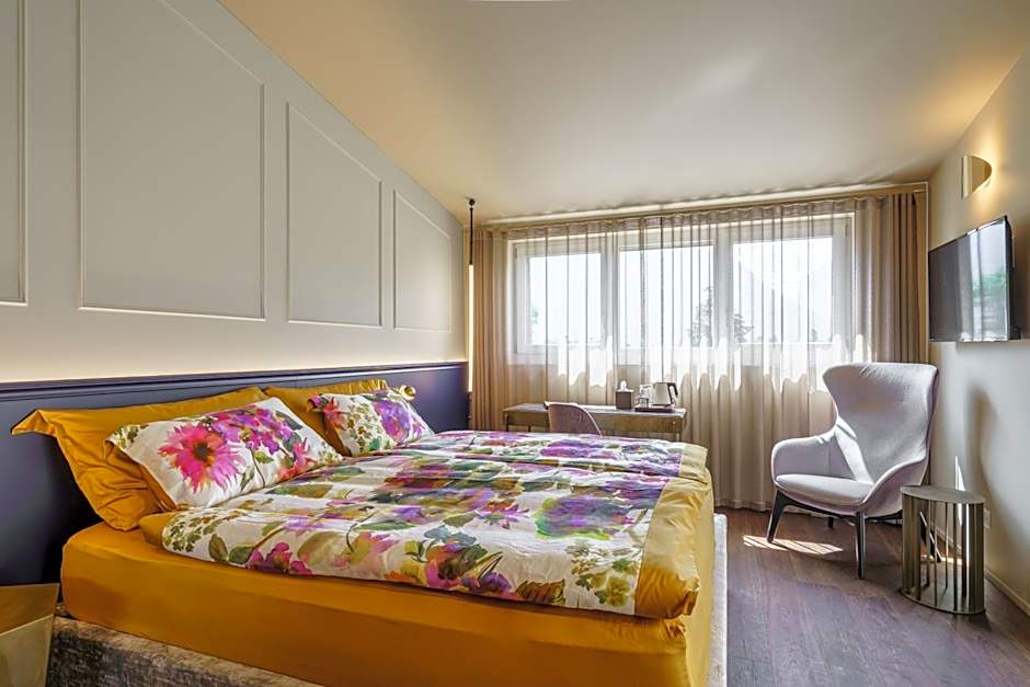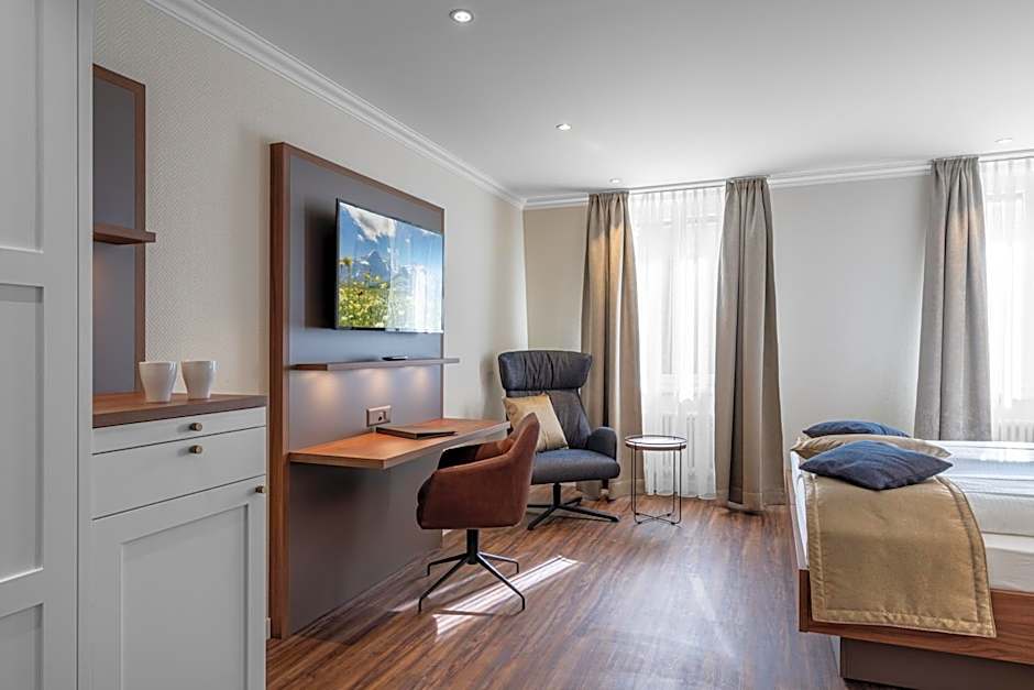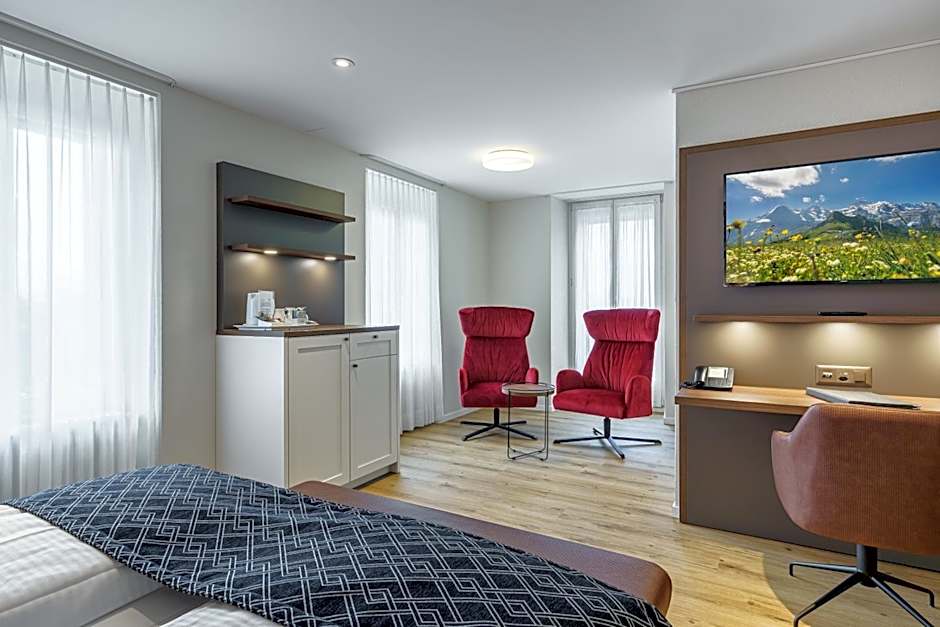 This room offers views of the Harder Kulm Mountain and comes with cable TV, a mini fridge and a bathroom with a shower or bathtub and a hairdryer. Coffee and tea making facilities are provided, as well.