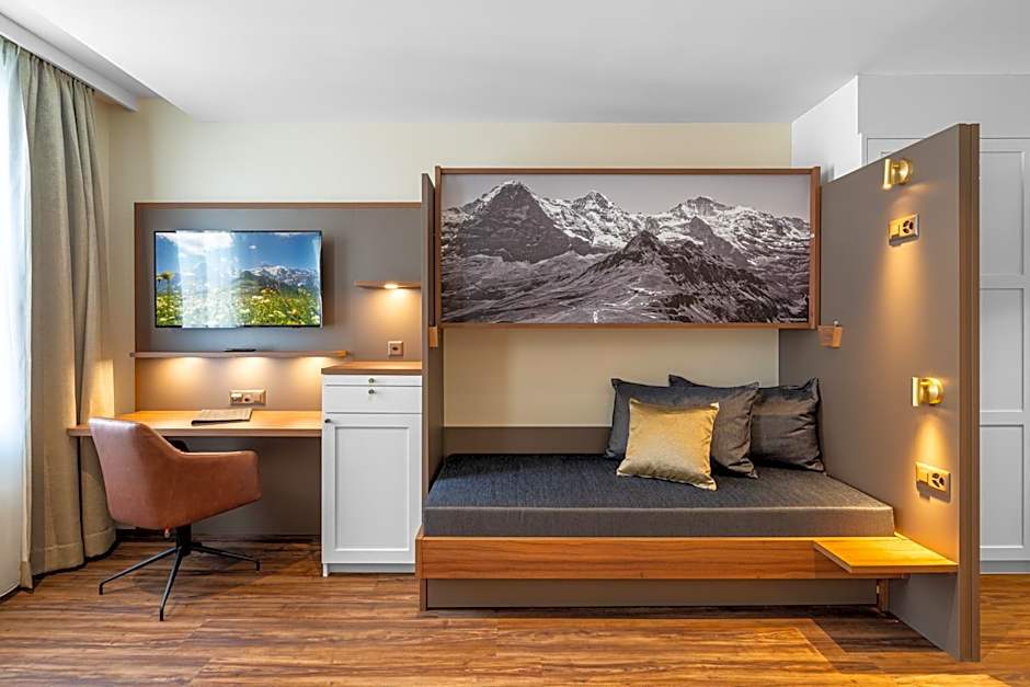 Set amid Interlaken’s lively Hoheweg, this four-star base blends Swiss charm with modern comfort, a perfect launchpad for alpine adventures. A hearty breakfast helps fuel explorations, and views can range from imposing mountains to tranquil gardens or iconic city sights. Free WiFi keeps plans flowing, while a bar, sun deck, and terrace invite a relaxed moment after a day on the trails or by the lake.