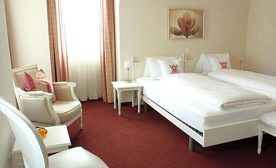 Hotel Weisses Kreuz offers a variety of room types to suit your needs. For those traveling with a companion, the Superior Twin Room and Twin Room offer comfortable spaces with two twin beds. Need a little more space? The Triple Room and Family Room provide ample room for larger groups or families, with additional twin or queen beds. If you're traveling solo, the Single Room is perfect for you. With cozy accommodations and a comfortable twin bed, it's the ideal sanctuary for a solo traveler seeking peace and relaxation.