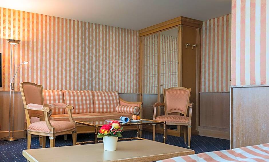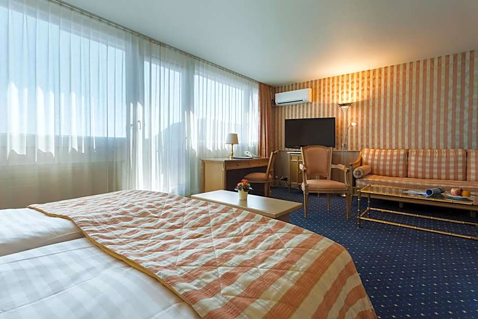 This spacious room features a seating area, satellite TV and a bathroom with shower, hairdryer and free toiletries. Amenities include mini-bar, radio, telephone and a safe.