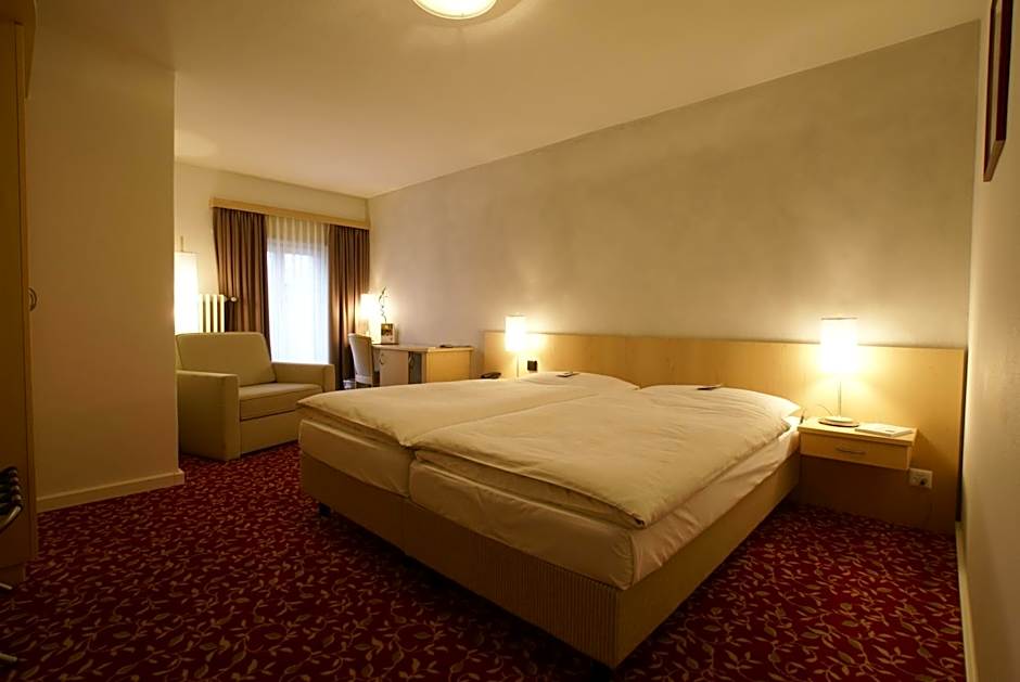 Excellent buffet breakfast with attentive server and complementary drinks/snacks in the lobby. Easy, free parking in front of the lodge. The charming Old Town is only a few steps away; the Schloss (castle) is also nearby but requires an uphill hike.