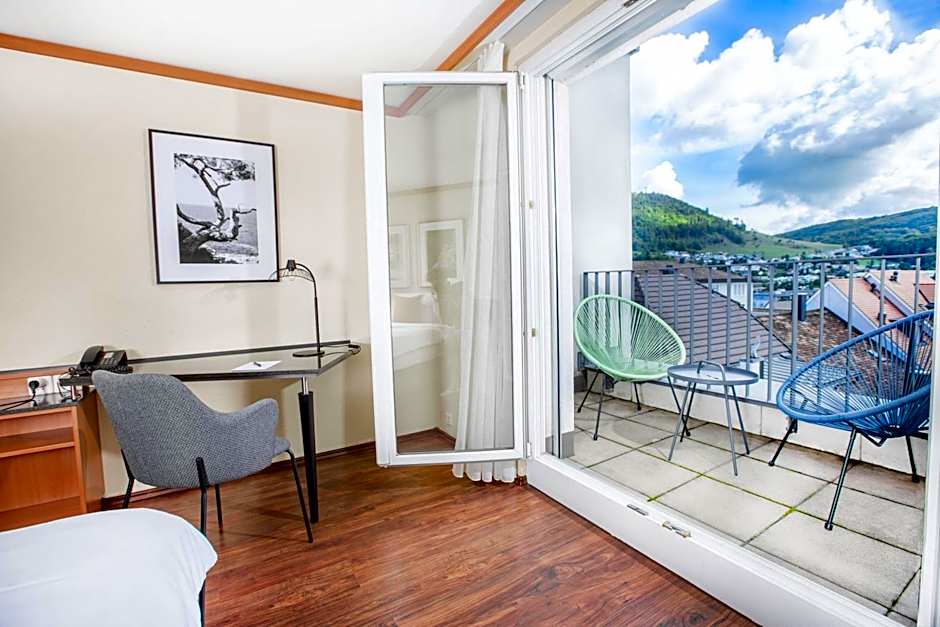 Hotel Engel Business & Lifestyle offers a variety of room options. The economy double and single rooms with city views are non-smoking and accommodate 2 adults and 1 child or 1 adult respectively. The double room with garden view is also non-smoking and accommodates 2 adults and 1 child. There is a family room with 1 double bed and 1 sofa bed, a triple room with garden view with 1 twin bed and 1 double bed, and a duplex suite with 1 sofa bed and 1 double bed, all non-smoking.