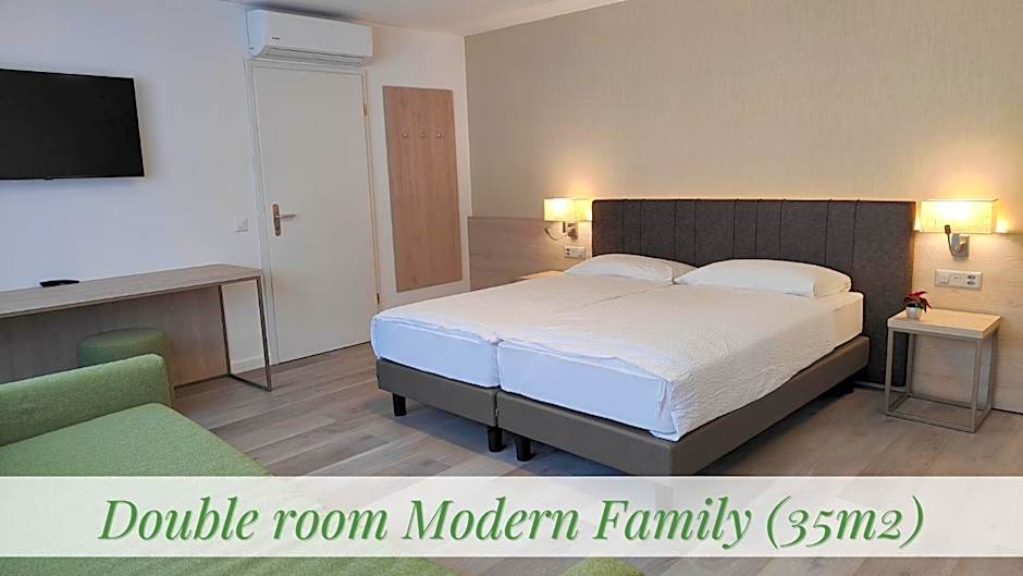 The family room offers a safe deposit box and a sofa, as well as a private bathroom featuring a hairdryer. The air-conditioned family room provides a flat-screen TV with satellite channels, a private entrance, a mini-bar, a wardrobe as well as mountain views. The unit offers 4 beds.