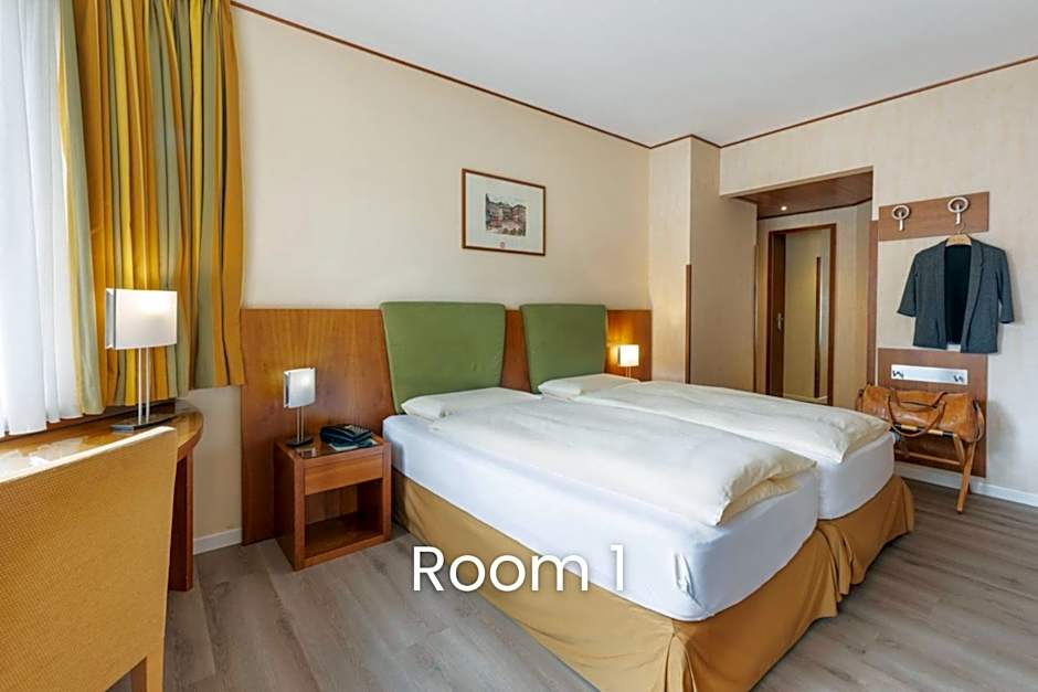 The view from superior lake view room was exactly the same it was on the pics in booking. Of course better in real. Good quality of food in the restaurant. Quiet area around the hotel. Indoor parking for 18 euro night. Cool location : 20 min by foot to get to the city center or bus number 2 with the stop right next to the hotel