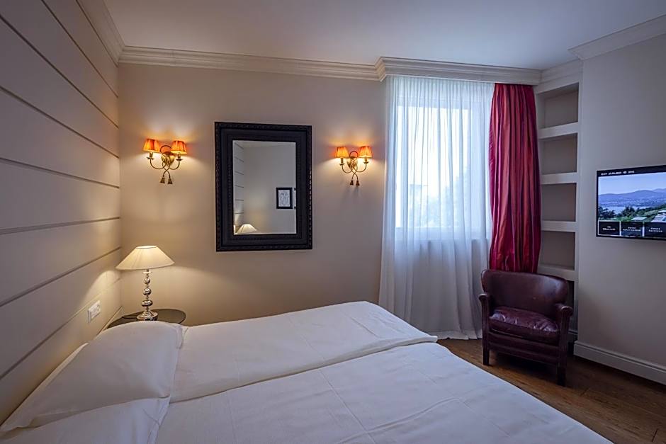Very spacious, air-conditioned suite with panoramic views over the park and the hills, a bedroom, a living room with a flat-screen satellite TV with 100 channels, an electric kettle, a kitchenette, and a large bathroom with bathrobes, slippers, and a multifunctional shower head. Mineral water is provided. Some suites have a balcony. Free access to the spa area.
