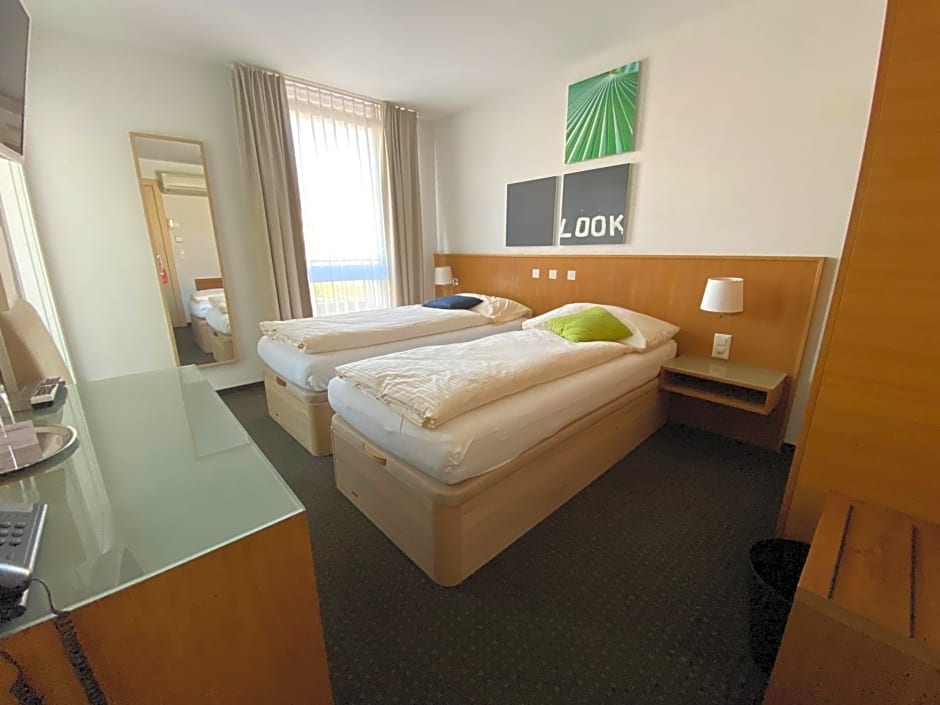 The family room is massive and has a huge terrace to chill out on! We used the coop supermarket that's literally next door (open until 7pm generally) and bought food/drink to have out there. The bunk beds for the kids were brilliant, and the bottom bunk is almost a double mattress. The other bed is huge! Breakfast was good, with plenty of choice. Use the visitor's pass that the hotel provides for a bus into the centre which takes 20 mins. It gets free buses and trains all over Lucerne. Parking was fine. We arrived early and got a space, and it was full when we got back from the city at 6pm.