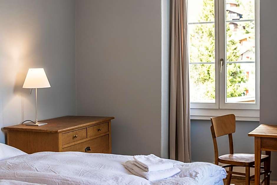 Room overlooking the village of Mürren. The shared bathroom and toilet are on the hall. Some rooms have a balcony.
