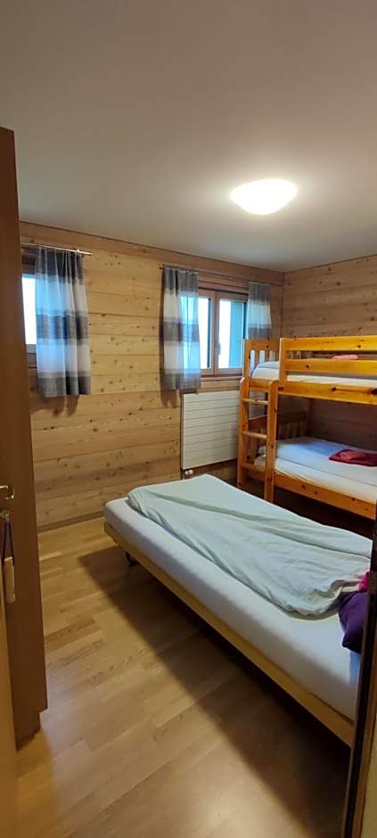 The location was beautiful and bucolic with unobstructed views of the Alps no matter what direction you looked. The Swiss cows were grazing about 20 meters from the hotel and the ringing of their cow bells was melodious and music to the ear! Our room had a nice balcony where we could gaze at the Alpine meadows while enjoying some cheese and wine. We were there in early July, so fields were filled with wonderful wildflowers! Christoph, the owner, was very friendly and accommodating. If the hotel shuttle is available the ride to town is free. Nice selection of liquor and other beverages. Delicious mushroom soup! Very clean room and superior insulation for heat and sound, heated floors. Beautiful wood- paneled walls and awesome mountain scape mural wallpaper on the headboard wall.