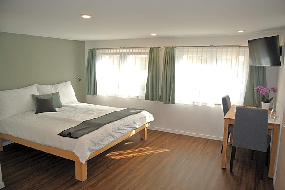 Both the room and bathroom were spacious, modern, spotless and had windows. The bed was comfortable, with nearby usb and normal plug sockets. Wifi was quick. Rösti for dinner was delicious, and the breakfast produce was fresh and tasty. Quiet, despite its central location. Free parking in front. Warm welcome from friendly owners. I would happily return!