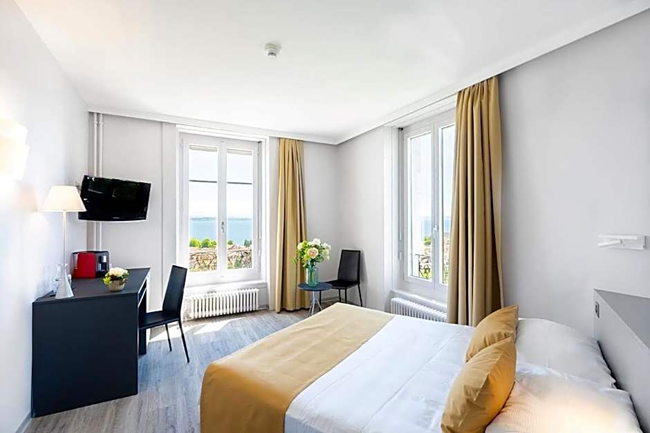 The Double Room with Street View is perfect for couples and small families. With a comfortable twin-double bed, it can accommodate up to two adults and one child. Spanning 172 square feet, this room provides enough space for relaxation and a good night's sleep. And if you're a non-smoker, you'll be pleased to know that all rooms at Hôtel Alpes & Lac are smoke-free, ensuring a fresh and clean environment for your stay.