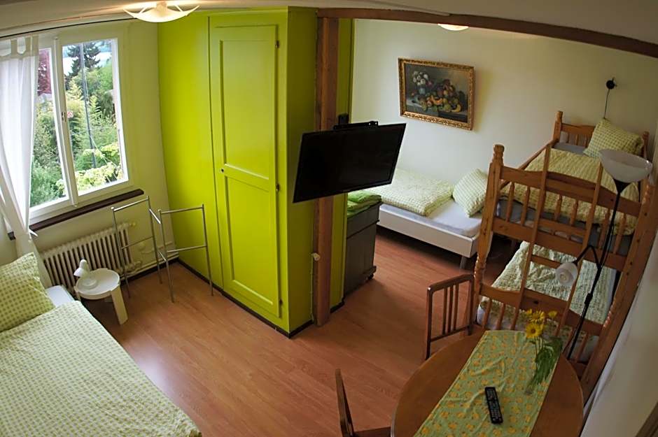 Friendly manager, Perfect view, excellent breakfast, and a welcoming spot for pet lovers, including cats and goats. There's parking available behind the building. The house is old but charming—definitely not for luxury hotel seekers, but perfect for nature lovers and those who appreciate a more laid-back, tolerant atmosphere. Highly recommended! very close to Panoramabrücke Sigriswil.