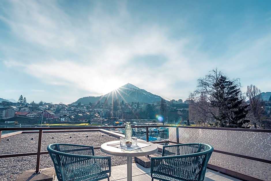 Hotel-Restaurant Seegarten-Marina is a 3-star hotel in Spiez, Switzerland, located just 0,3mi from the city center. Address: Schachenstrasse 3. The beachfront setting offers lake views and mountain views, plus a balcony and terrace to savor the scenery. Inside, guests will find air conditioning, free toiletries, non-smoking rooms, and an elevator for easy arrivals and departures.