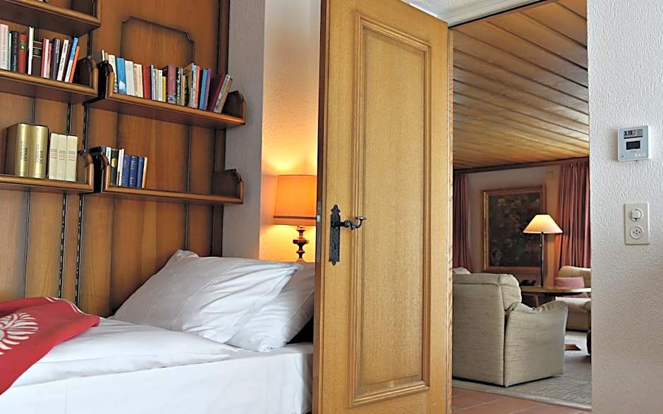 Some suites are decorated with stone pine wood panels. The suite offers a separate bedroom and walk-in wardrobe. It consists of a spacious living room, a marble bathroom and views of the surroundings and valley.