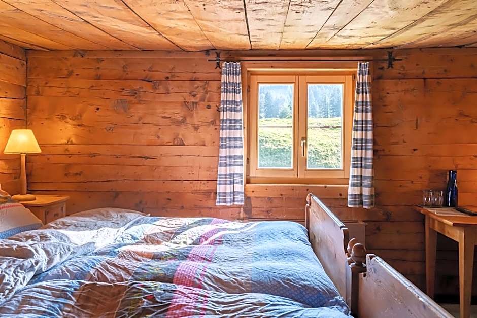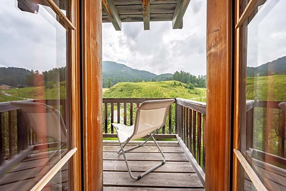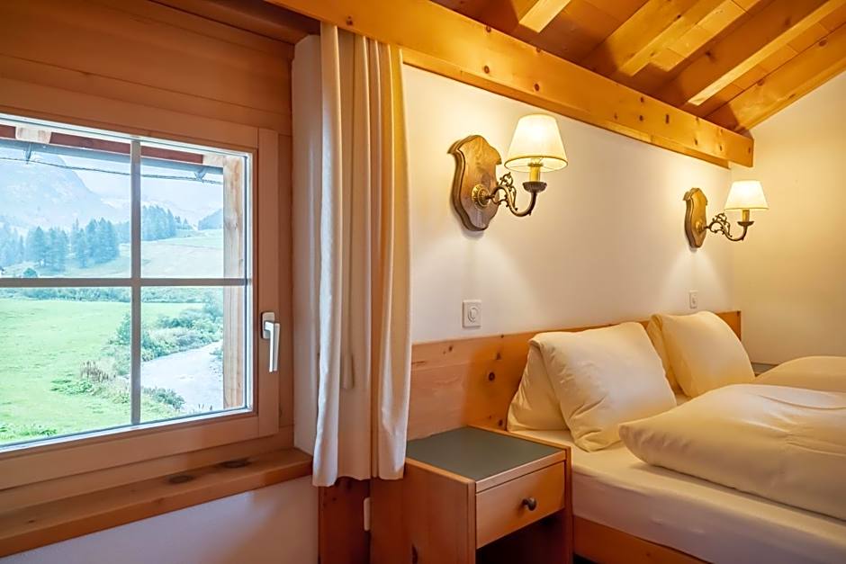 Great room (two floors connected by a steep ladder) with a picturesque view to the Fex-valley. really quiet, because it's outside of the village, situated in a small hamlet in the Valley. You can reach the hotel also by feet in about 15 minutes from the next bus station by following a beautiful track throng a canyon and over mountain meadows...so don't come with a trolley case...:-)