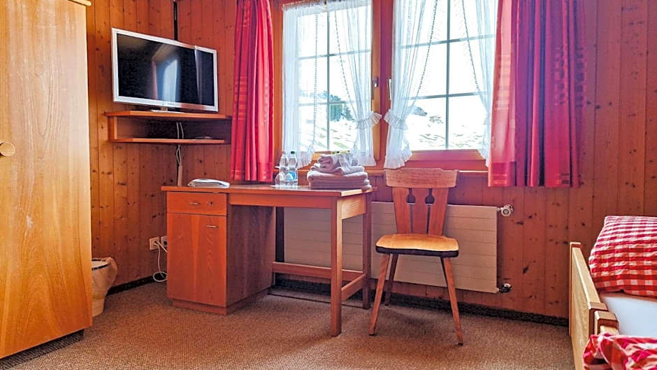 Very nice Swiss Gasthasu. Well maintained and clean. We had the large upstairs family room to sleep four. Cold at night, with large comforters. Views of the town and Swiss countryside are amazing. Cows and Cow Bell sounds are everywhere. Food in restaurant was very good.