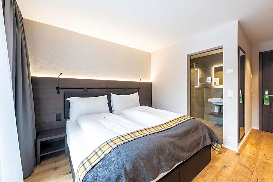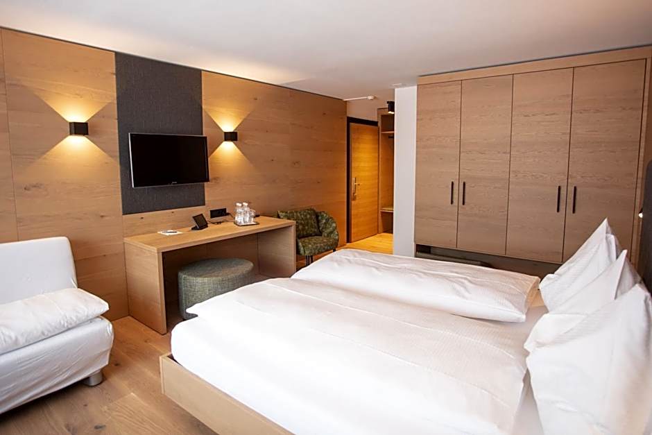 Cozy double room in the Posthotel Valbella in traditional Graubünden style. These comfortable double rooms are furnished with local charm and offer everything you need for a relaxing stay in Valbella. All standard rooms are located on the quiet west side of the hotel.k.