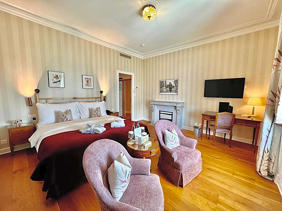 These spacious, air-conditioned deluxe rooms offer views over Lake Geneva and the Alps. They feature a mini-bar, a flat-screen TV with satellite channels and a private bathroom.