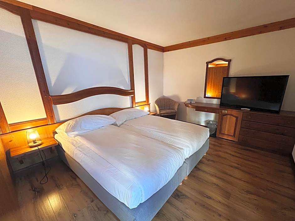 Rooms are not too big but have a bit of TV, comfortable beds, enough storage space, and a bathroom with some extra space. The view will depend on the room - the valley view is excellent (I recommend it). The hotel offers breakfast (good and quick) with all the basics (bread, pastry, scrumble eggs, musli, pastry, coffee, etc.). You can also have a buffet dinner (a bit too expensive, I think - 80+ CHF for 1 adult + 1 kid). You can walk to the other hotel, same network, and have a cheaper al-a-carte dinner (~50 CHF - at least it was our experience). There are also some grocery stores ~10 min walk from the hotel. There is also underground public parking, which is excellent, big, and reasonably priced.