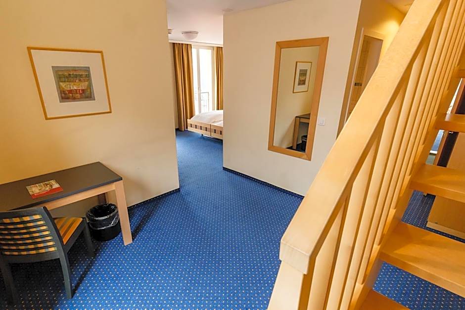 This family room is spread across 2 floors with a gallery and a balcony. It features a private bathroom with a shower. The rooms feature a view of the village street or the valley.