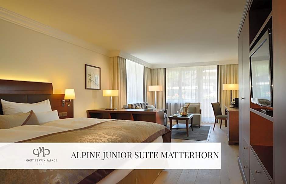 Suite with a bedroom and a living room. This suite offers views of the Matterhorn.