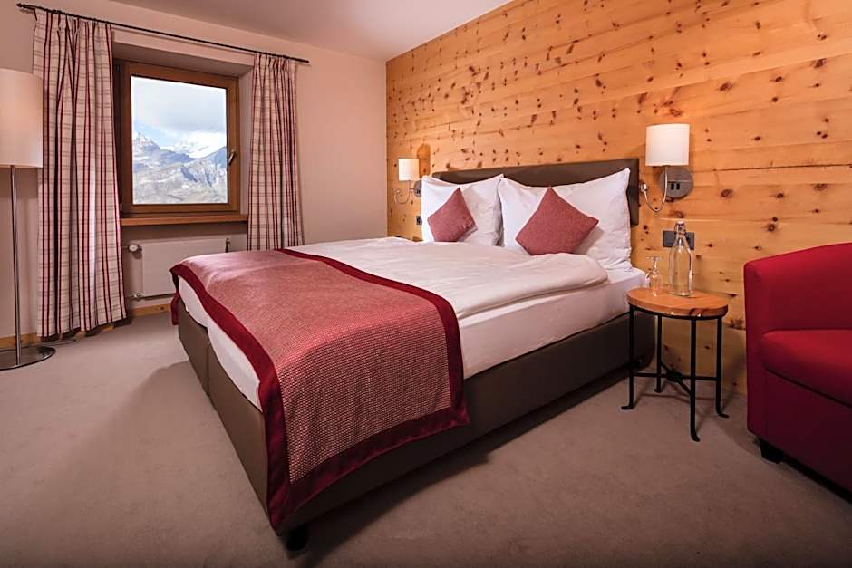 Rustically furnished room with a balcony overlooking the Matterhorn, satellite TV, a safe, and a private bathroom. Please note that the view of the Matterhorn is only from the balcony, not from inside the room. Please note that extra beds are not available in this room type.