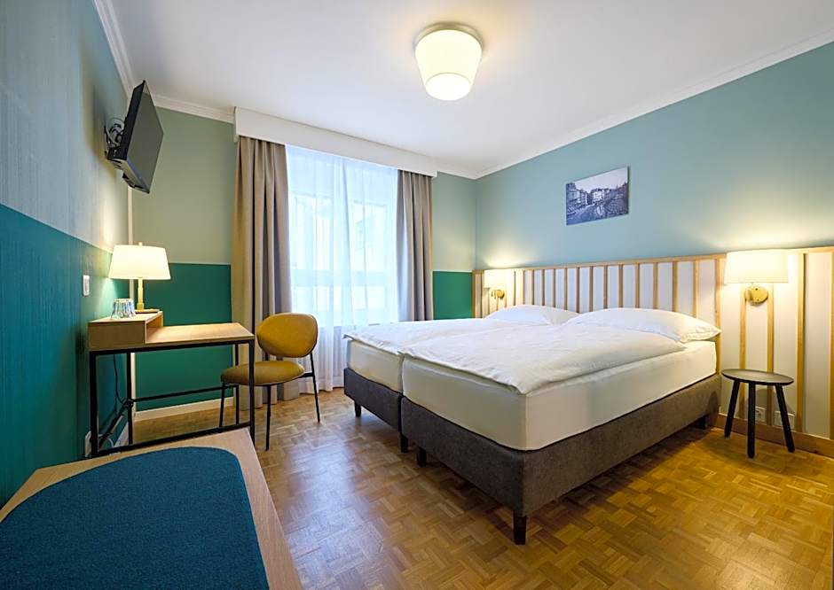 Historic but modern hotel located within walking distance of HB railway station and old town. The top-floor dormer room was cozy with a very comfortable bed, desk, good lighting, and a sitting bench. The bathroom had quality towels and soap amenities. The included breakfast was a selection of savory/sweet items and beverages. Staff members were friendly and efficient.