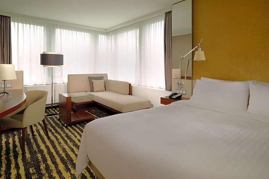 This spacious suite with city or lake views has a separate living room and seating area and a large bedroom area featuring a king sized bed with Marriott bedding which includes down mattress topper, duvet and pillows. Guest also enjoy access to the M Club Lounge (including a small American breakfast), where nonalcoholic beverages and other snacks are served throughout the day.