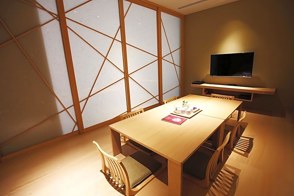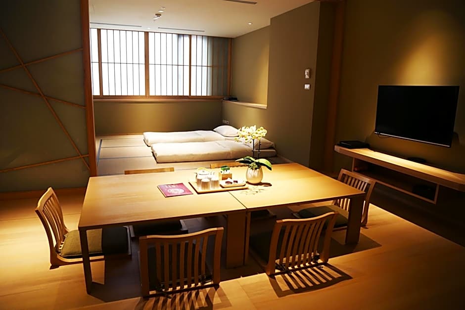 Coming with 2 Japanese futons on the tatami floors and a private bathroom with a bathtub, this room is fitted with an electric kettle, refrigerator and flat-screen TV.