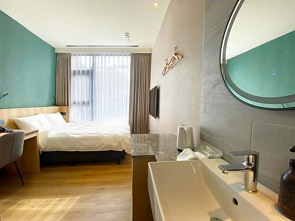 A hotel with the traveller in mind. Excellent location, Excellent Service, Excellent cleanliness & attention to detail. A beautiful park across the road to relax, unwind, exercise and admire the view from your hotel room. We booked an extra large room with a bath with a lake view on the 6th / top floor. A lovely boutique hotel with an added benefit of a dining room with complimentary hot & cold water, sparkling water, beer, softdrinks, iced tea & vending self serve machines. Also a few snacks, dinnerware & tableware & cutlery are also provided . Very quiet but close to MRT A17 but A18 is not far and is the main station MRT & high speed rail. Also near the public bus stop. Around the corner is an excellent 7-11 with a cafe and other restaurants . Gloria Outlet centre is an easy 7-8 minute walk and has an adjoining shopping mall and XPark Aquarium. It has heaps of shopping and restaurants and food courts and street vending trucks. The A18 rail is across the road with a link way bridge and on the other side is IKEA with an excellent restaurant serving a great variety of meals suitable also for us westerners and locals alike at reasonable costs.A word of warning about transport- have cash organised for transport from the airport, terminal 1 (A12) does not accept Apple Pay and cards as of yet and have not been fully intergrated but can be used at A18 on the one way trip to the airport but not from the airport. Taxis are expensive….
