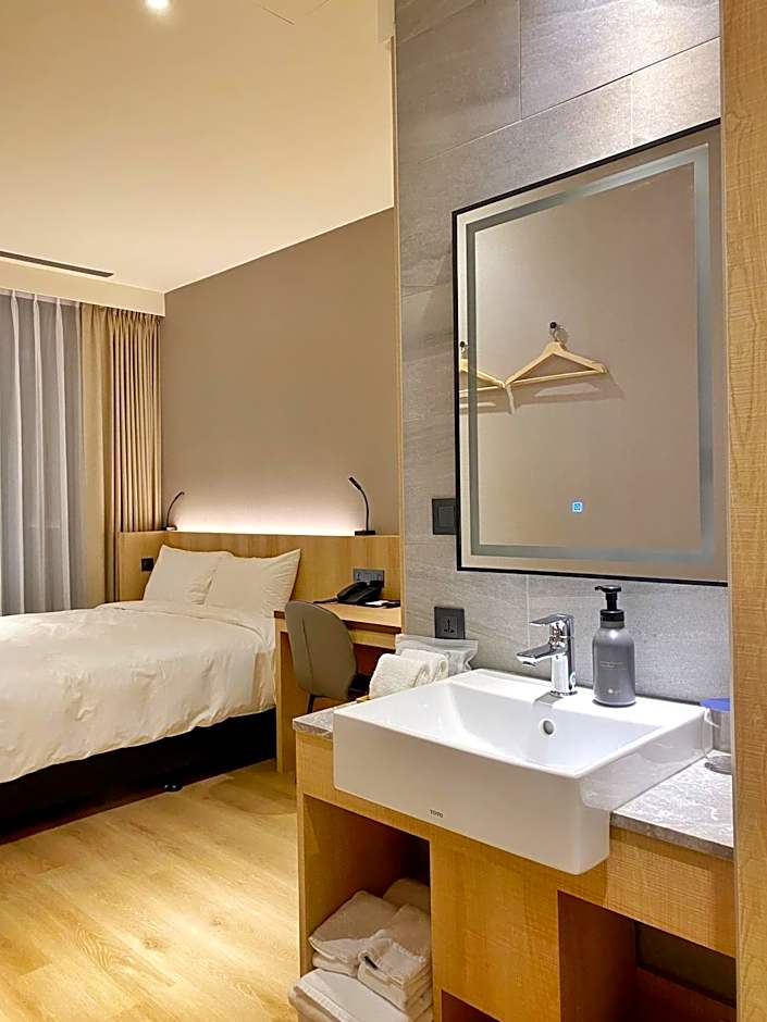 We booked three rooms, because we went to the concert at Taoyuan Messe. It was convenient for us. The location was fantastic, only less than 10 minutes to the MRT station, from there only one stop to the THSR station easily (Taiwan High Speed Railway). The staffs were nice and friendly and the service was good. There are free drinks and snacks were nice touch. There’s a nice park close by which I like. Even though the size of the rooms aren’t big, we enjoyed our one night stay and slept well. Thanks!