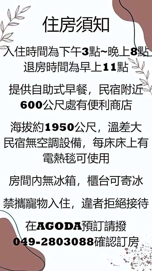 No. 23-1, Rungguang Lane, Datong Village, Renai, 54641, Taiwan
