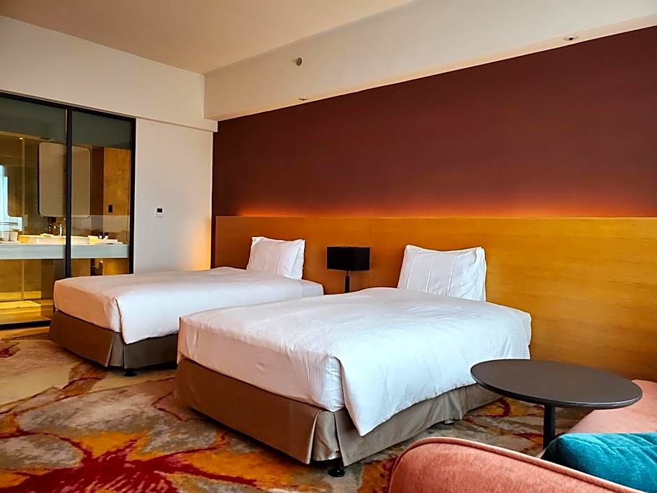 Bed options: Two twin bed size(1202002) featuring superior HARNN bath products. Bathroom with spacious walk-in rain shower(no tub). **To support the government policy with the goal environmental protection and reduce plastic wastes, guests are encouraged to bring their own amenities. We will only provide shampoo & shower gel and hair conditioner in the guest room form Jun 1st 2022, other disposable amenities will no longer be deployed. Amenities are available by request to "Housekeeping". (please dial 7 from the house phone)