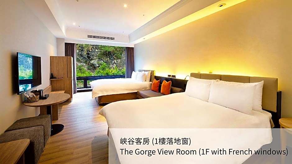 Located on the ground floor, covering 40 square-yard, this room features Taroko Gorge views through the French window. The magnificent scenery and lulling sounds of running water create a natural repose.