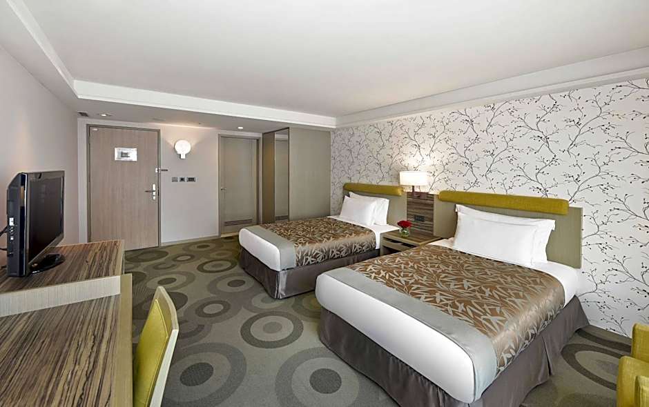 Enjoying city views, this large air-conditioned room features elegant decor, a flat-screen TV and a personal safe.