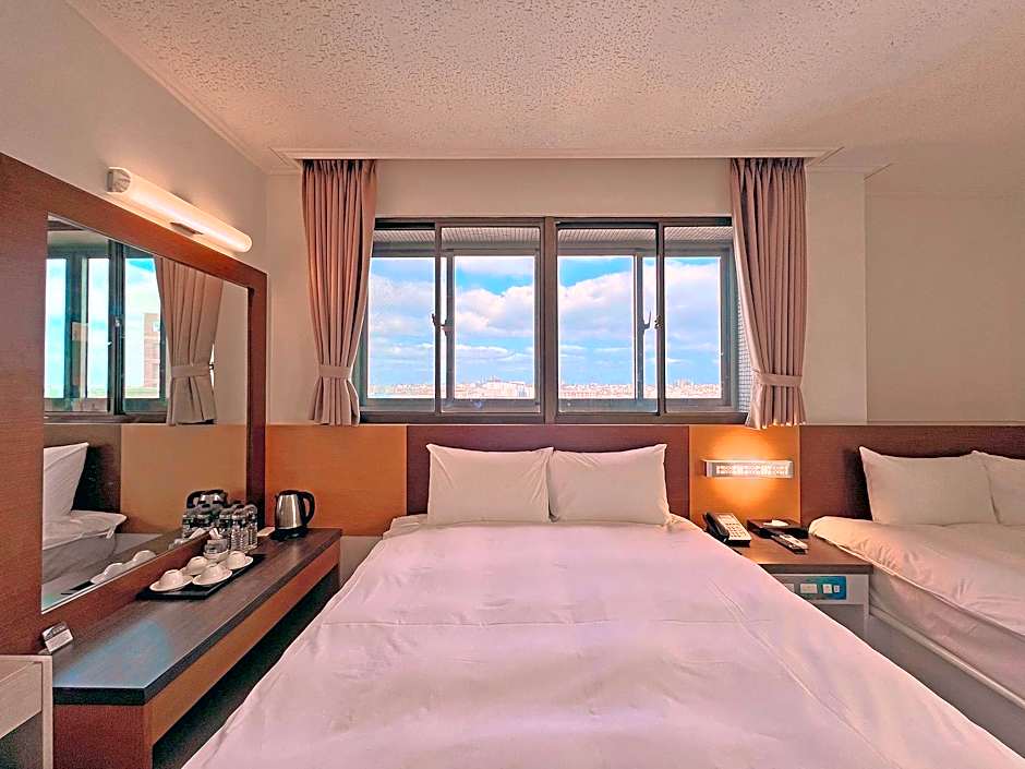The room is clean. The staff are very nice and friendly, and the location is quite convenient—close to the main street (中正路). There’s free drinking water available on the first floor. The free breakfast is good, and they also offer a free round-trip airport pickup service, which is a big plus!