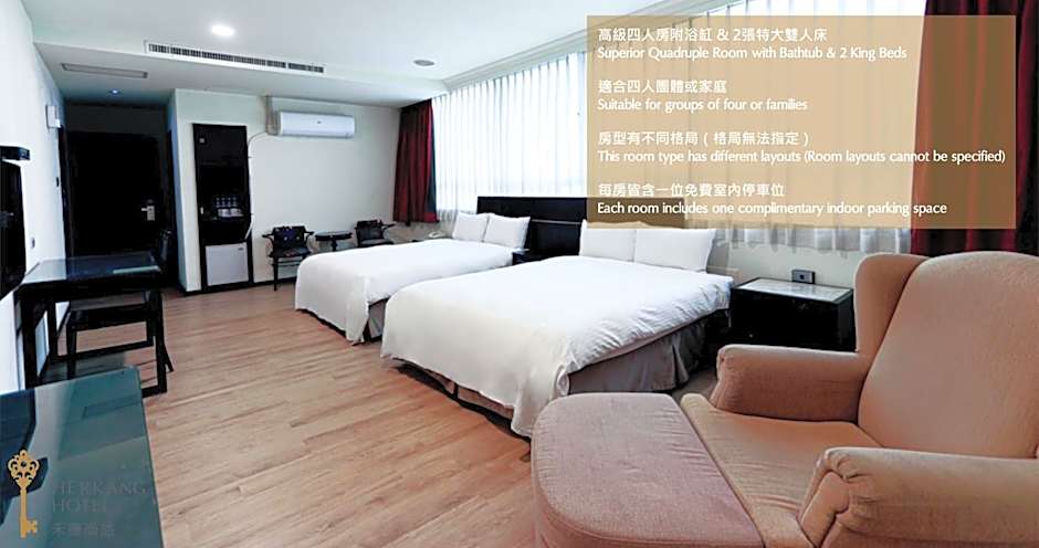 Looking to accommodate your travel group? The hotel offers a range of thoughtfully designed room types to cater to varying needs. From the Superior Quadruple Room with a bathtub to the Deluxe Family Room with a bathtub, each room is equipped with extra-long beds, a private bathroom, and free toiletries, ensuring a comfortable and relaxing stay for all guests. Whether you're traveling with family or friends, Herkang Hotel provides spacious and cozy accommodations to make your stay in Taichung truly memorable.