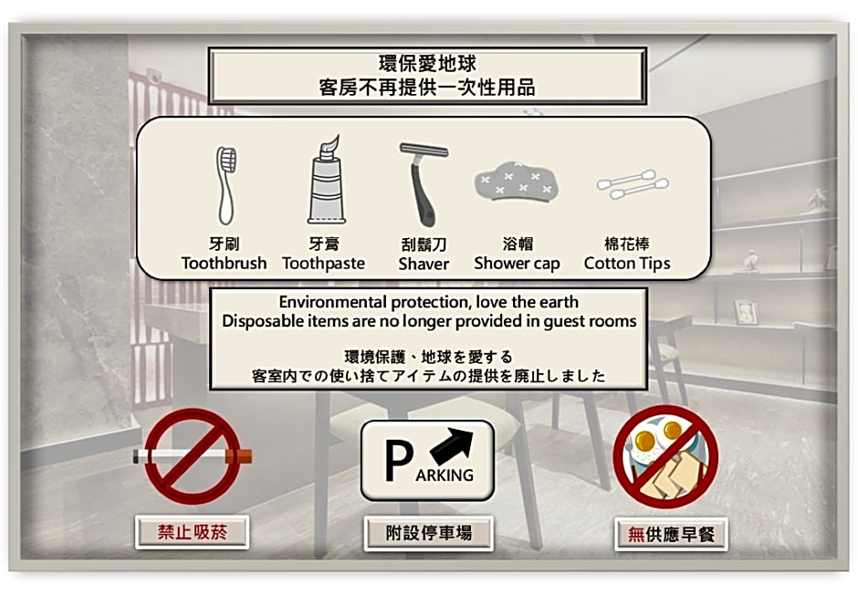 Room is spacious with a comfortable bed and great shower. The hotel is in a convenient location with several landmarks within 5 -10 minutes walk. There is easy access to buses just down the road for travel to Anping area. Tainan local train station about 1 km away which connects to Tainan HSR. The hotel is very close to 7 Eleven and Family Mart for snacks and meals.